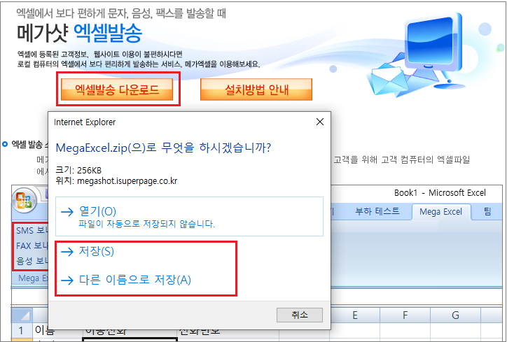 '¿¢¼¿¹æ¼Û ´Ù¿î·Îµå' ¹öưÀ» ´©¸¥ ÈÄ 'ÀúÀå' ¶Ç´Â '´Ù¸¥ À̸§À¸·Î ÀúÀå'À» Çϰí MegaExcel.zip ¾ÐÃàÀ» Ç®¾î ÁÝ´Ï´Ù. |