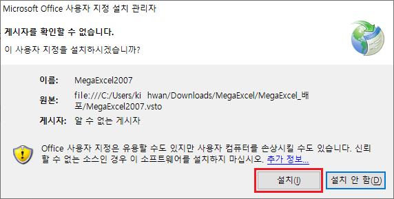 ´Ù¿î·Îµå ¹ÞÀº ÆÄÀÏ(MegaExcel.zip)ÀÇ ¾ÐÃàÀ» Ç®¸é ³ª¿À´Â ÆÄÀÏ Áß setup.exe ÆÄÀÏÀ» ´õºíŬ¸¯ ÇÕ´Ï´Ù. |