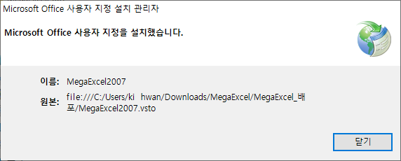 ¼³Ä¡°¡ ¿Ï·áµÇ¾ú½À´Ï´Ù. ¡®´Ý±â' ¹öưÀ» Ŭ¸¯ÇÏ°í ¿¢¼¿À» ½ÇÇà ½ÃŲ ÈÄ ÀÌ¿ëÇØ ÁÖ¼¼¿ä. |