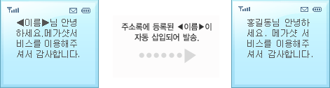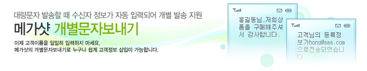 ¸Þ½ÃÁö ÀÔ·Âȸ鿡¼ »ðÀÔÇÒ °³º° °í°´Á¤º¸¸¦ ¼±ÅÃÇϽøé ÁÖ¼Ò·Ï¿¡ µî·ÏµÇ¾î Àִ ȸ¿øµéÀÇ °¢°¢ÀÇ °í°´Á¤º¸(À̸§, À̸ÞÀÏ, ³ªÀÌ, »ý³â¿ùÀÏ µîµî) ÀÌ ¹®ÀÚ ¹ß¼Û ½Ã ÀÚµ¿ »ðÀԵǾî Àü¼ÛµË´Ï´Ù.